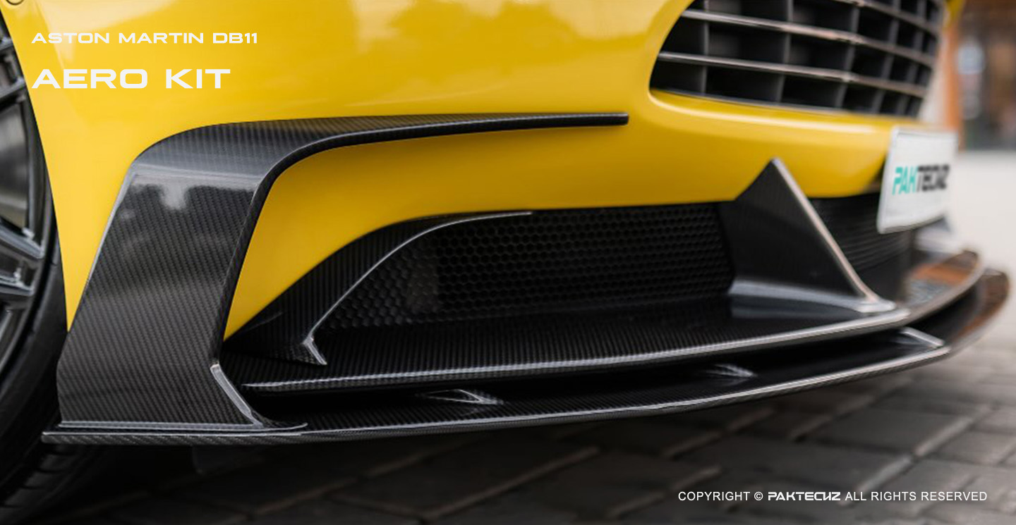 Style, performance and functionality come together with the Aston Martin DB11 Carbon Fiber Front Canards . Engineered to maximize airflow, increase downforce and decrease drag, these aerodynamic winglets are tailored for performance upgrades as well as luxury styling upgrades. Constructed of aerospace-grade carbon fiber construction for lightweight durability while offering bold aesthetic enhancement while improving high speed stability and cornering agility. Integrated seamlessly into your factory design for effortless installation and long-term performance; perfect for those seeking sleek form coupled with superior function.